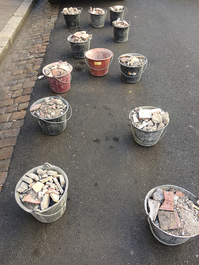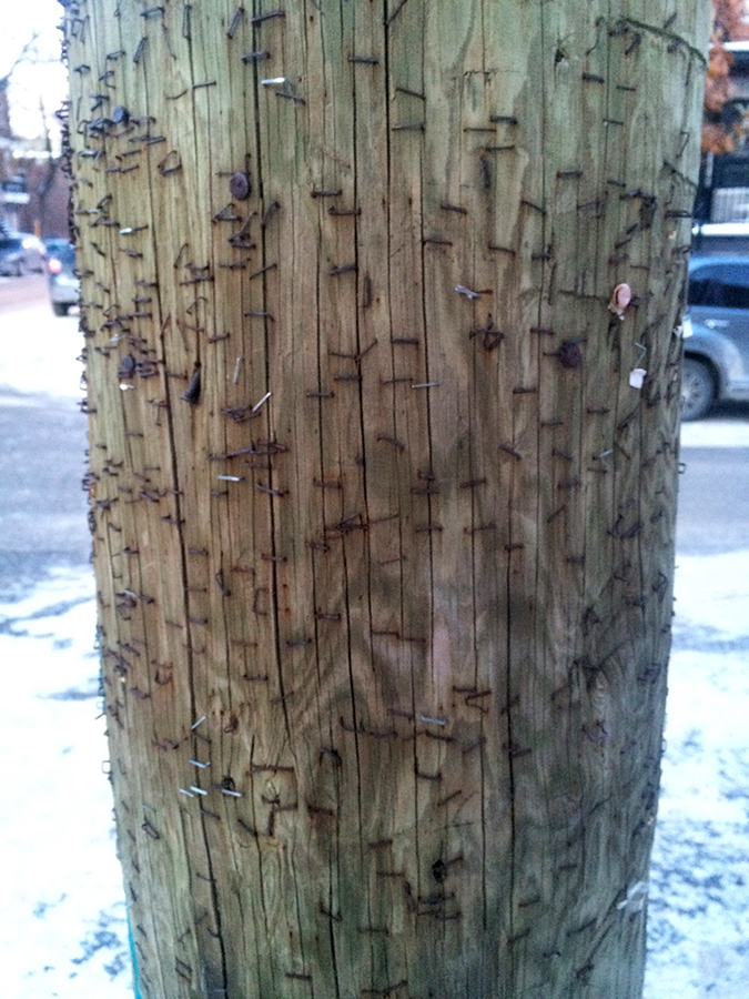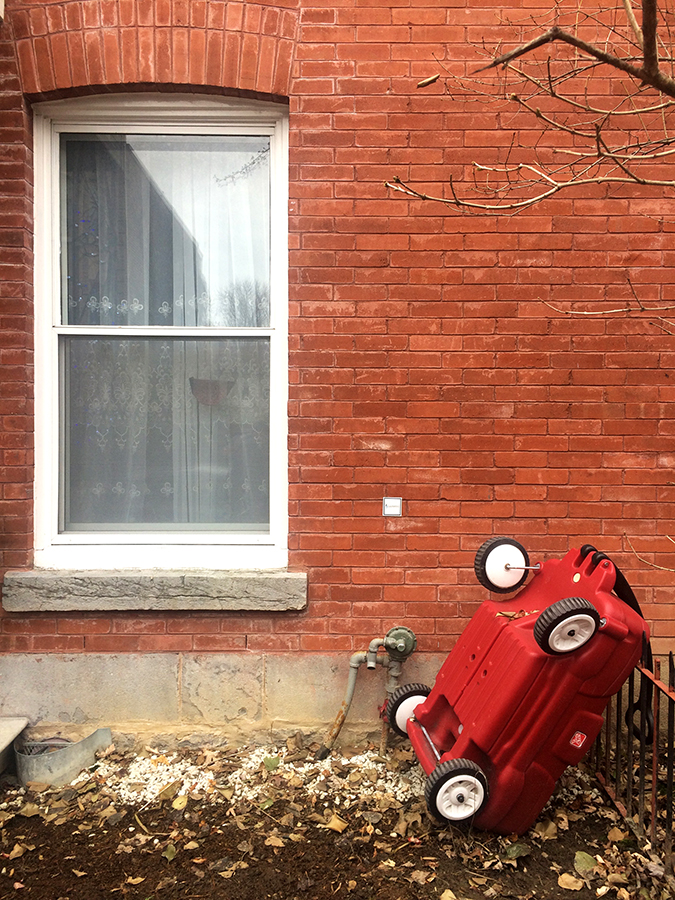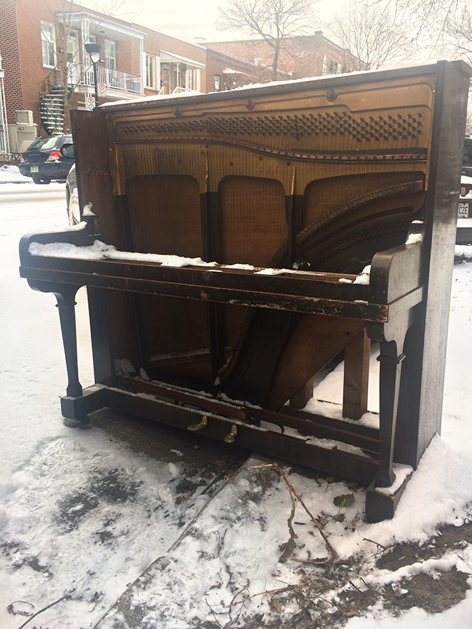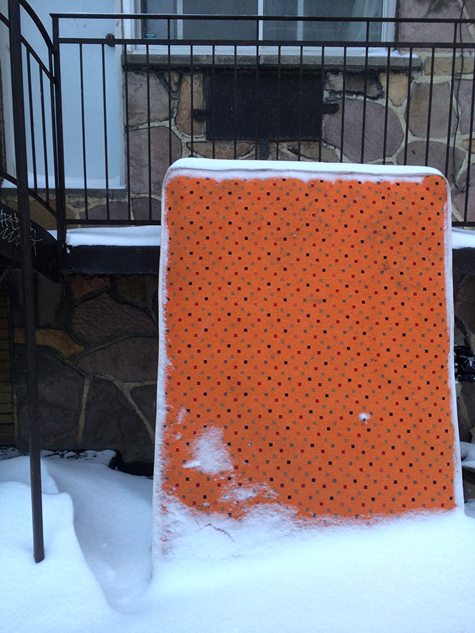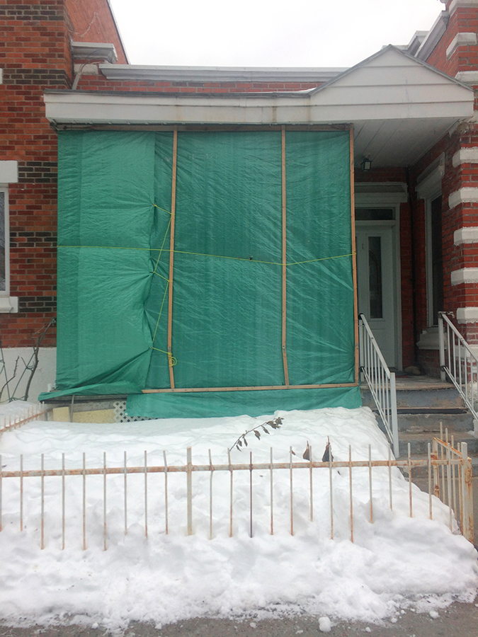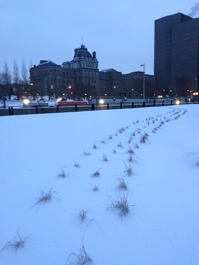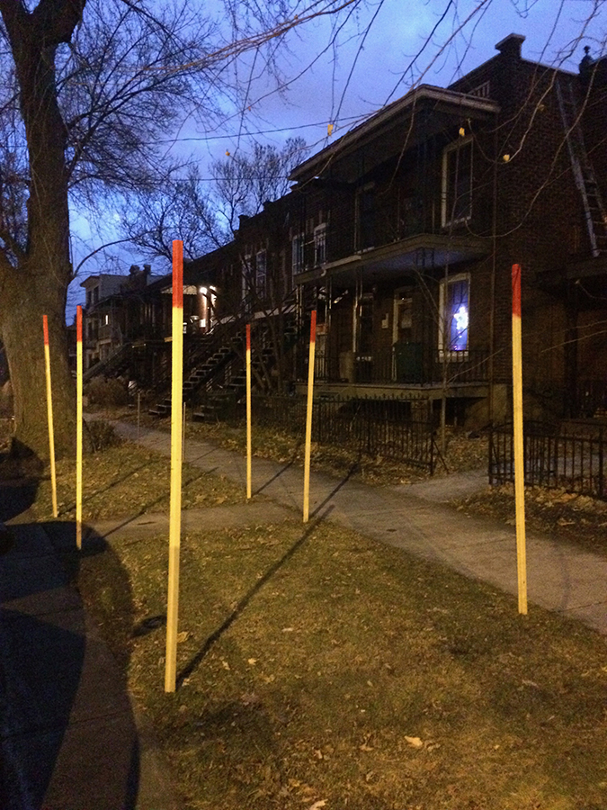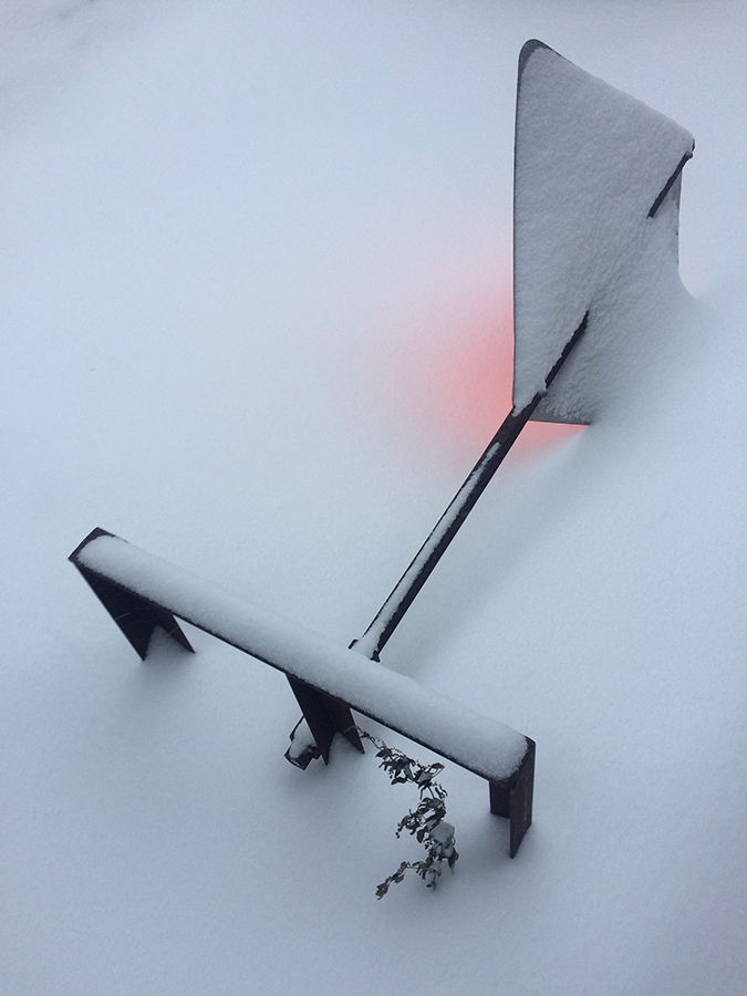 [EN] Sculptures in the city is a series of 60 digital photographs of random constructions and urban landscapes found in the city of Montreal during the winter of 2018/2019. Inspired by the aesthetics of the Realraum and originating from the concept of objet trouvé, these images are unconcerned with personal biography and emotional immediacy, but evoke feelings of strangeness and displacement. These fragments of found urban landscapes are a meditation on the rigid opposition between nature/culture upheld by Western society, as well as on the corporeality of contemporary sculpture, as the shadow of a tree at nighttime, dead leaves on a staircase, or traces of steps on snow can be art. This project received the support of Timpul Cultural Foundation.