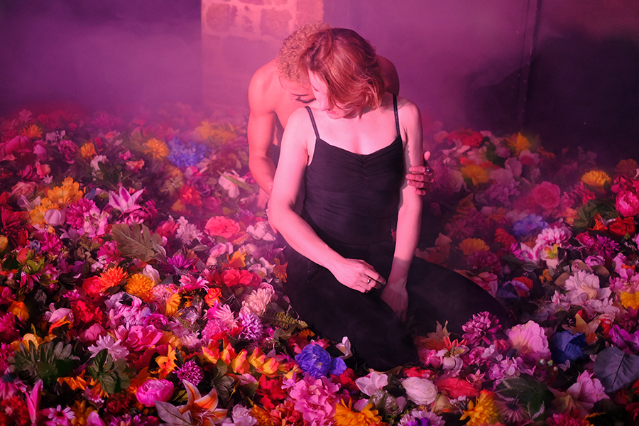 Cette pièce chorégraphique a lieu dans mon installation Primavera, qui se compose de plusieurs centaines de fleurs textiles. Cette surabondance botanique a été inspirée par les tapisseries flamandes millefleur et par la peinture Primavera de Sandro Botticelli. Bien que leurs périodes de floraison soient incompatibles, plusieurs centaines de variétés de fleurs se juxtaposent dans ce tableau, tout comme dans l’installation Primavera.