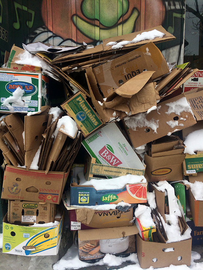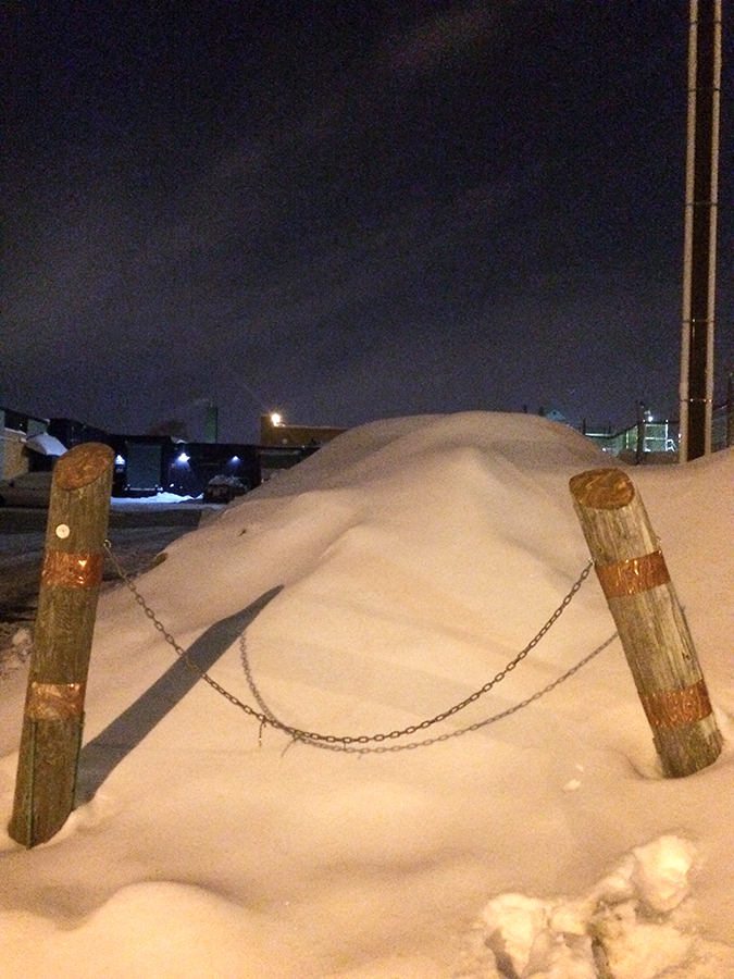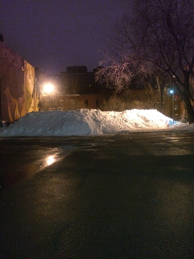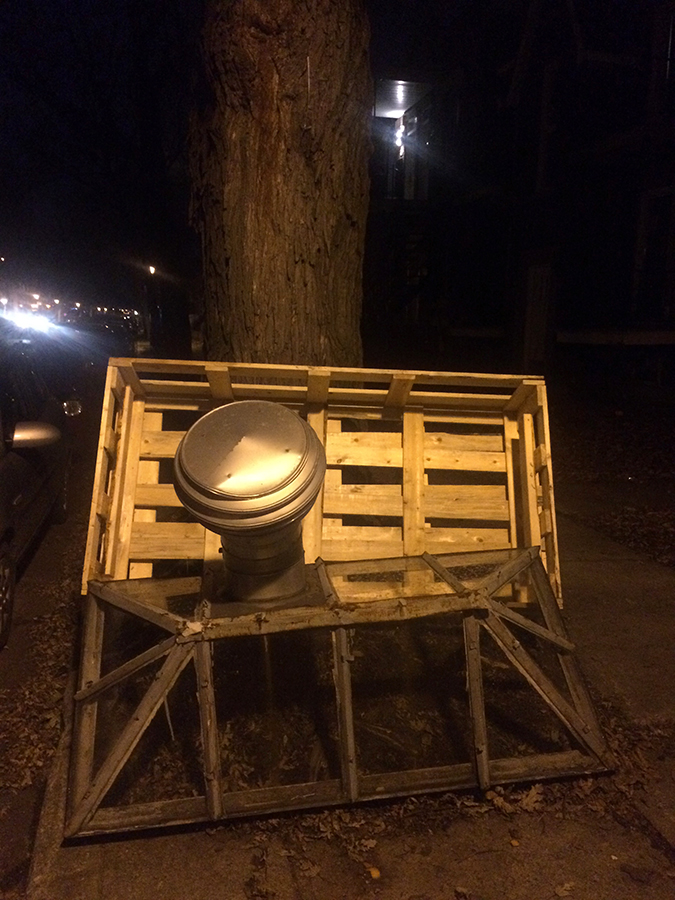 [EN] Sculptures in the city is a series of 60 digital photographs of random constructions and urban landscapes found in the city of Montreal during the winter of 2018/2019. Inspired by the aesthetics of the Realraum and originating from the concept of objet trouvé, these images are unconcerned with personal biography and emotional immediacy, but evoke feelings of strangeness and displacement. These fragments of found urban landscapes are a meditation on the rigid opposition between nature/culture upheld by Western society, as well as on the corporeality of contemporary sculpture, as the shadow of a tree at nighttime, dead leaves on a staircase, or traces of steps on snow can be art. This project received the support of Timpul Cultural Foundation.