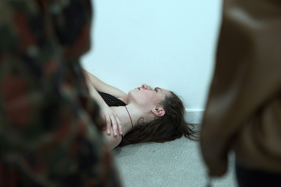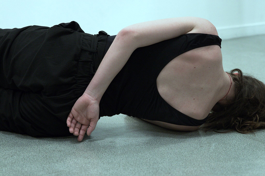 [EN] Solitude(s) is a choreographed performance dealing with the ambiguity of human relationships. The three performers introduce strange and unexpected gestures into familiar movements, morphing tenderness into rage and vice versa. These scenes deploy a large array of facial morphologies and expressions, stretching from smile to rictus, from fear to compassion, from desire to remorse. The performers’ bodies become living sculptures in confrontation with reality, denouncing our collective fascination with violence. Moreover, bodies become instruments of space exploration: in a sparsely designed area, they position, deploy and close themselves. The repetitive, minimalist music by Todd Lent was created concurrently with the choreography.